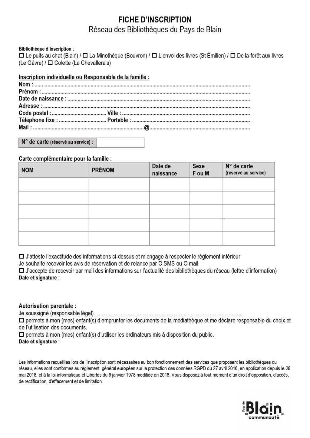 L'abonnement est gratuit, il suffit de remplir un document d'inscription lors de votre venue à la bibliothèque ou de la pré remplir en le téléchargeant ici : Fiche d'inscription